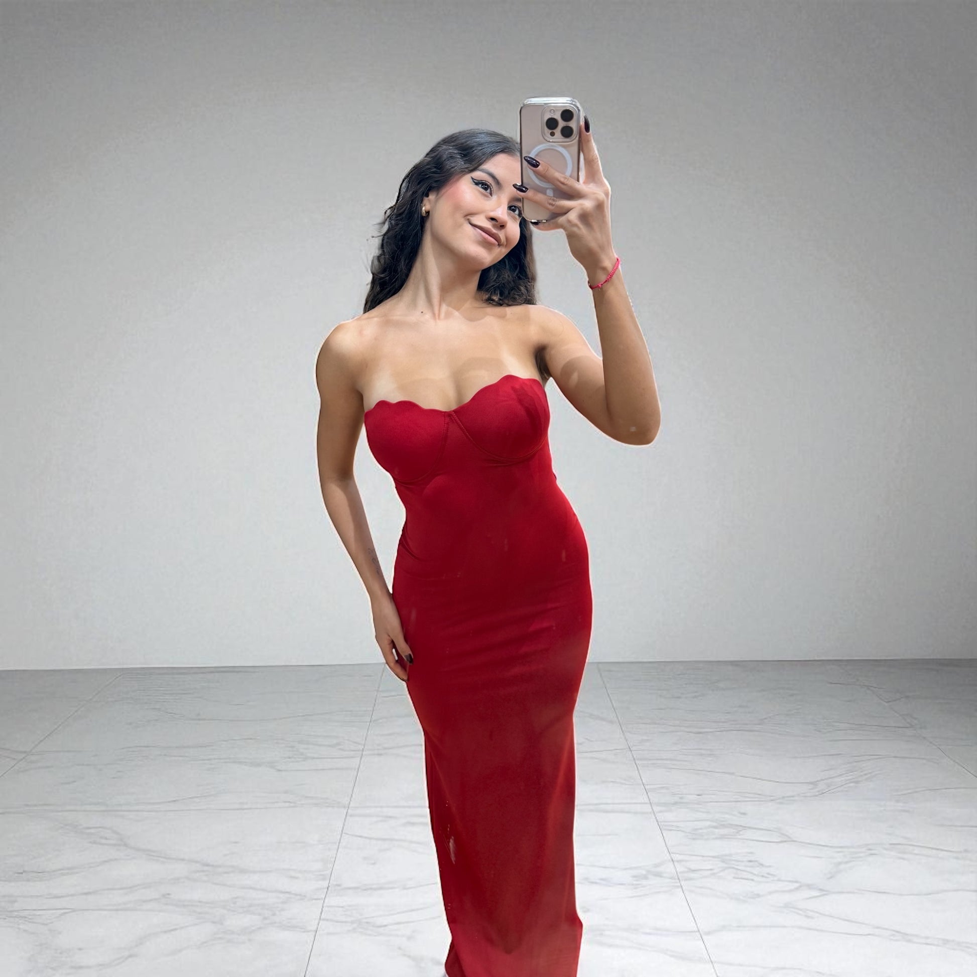 Designed with a sculpted cup detail that perfectly blends elegance and allure, this dress hugs every curve and guarantees all eyes will be on you