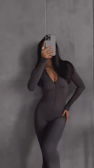 Elevate your style with the 'Zenith' Sculpt Flare Jumpsuit. Crafted from a premium, second-skin fabric in timeless onyx, this jumpsuit offers an unparalleled silhouette with its elegantly flared leg and long-sleeve design. It subtly sculpts and defines, creating a sleek, powerful look from day to night. The minimalist aesthetic allows for endless versatility.