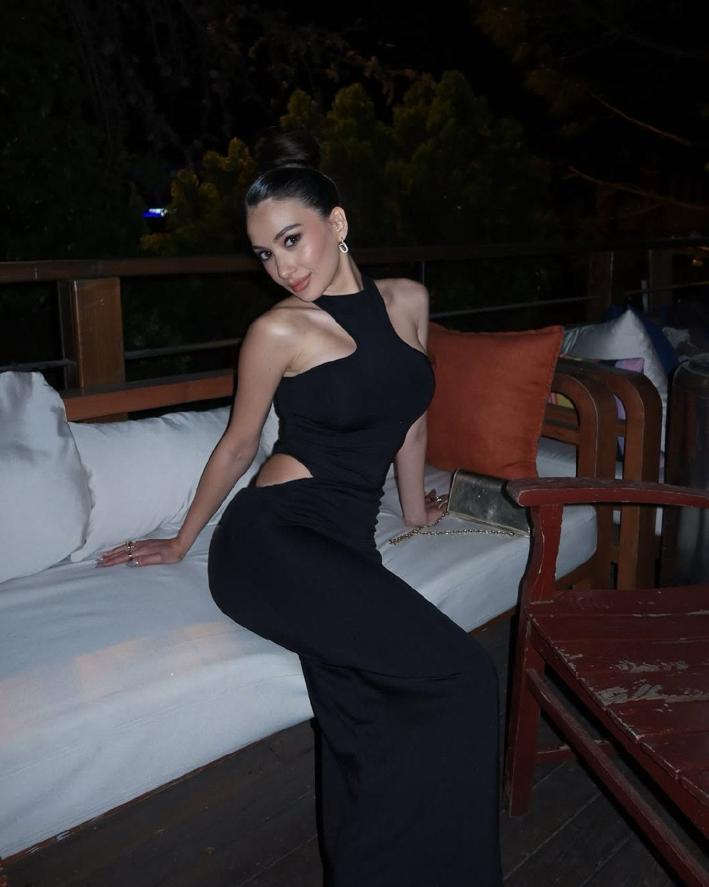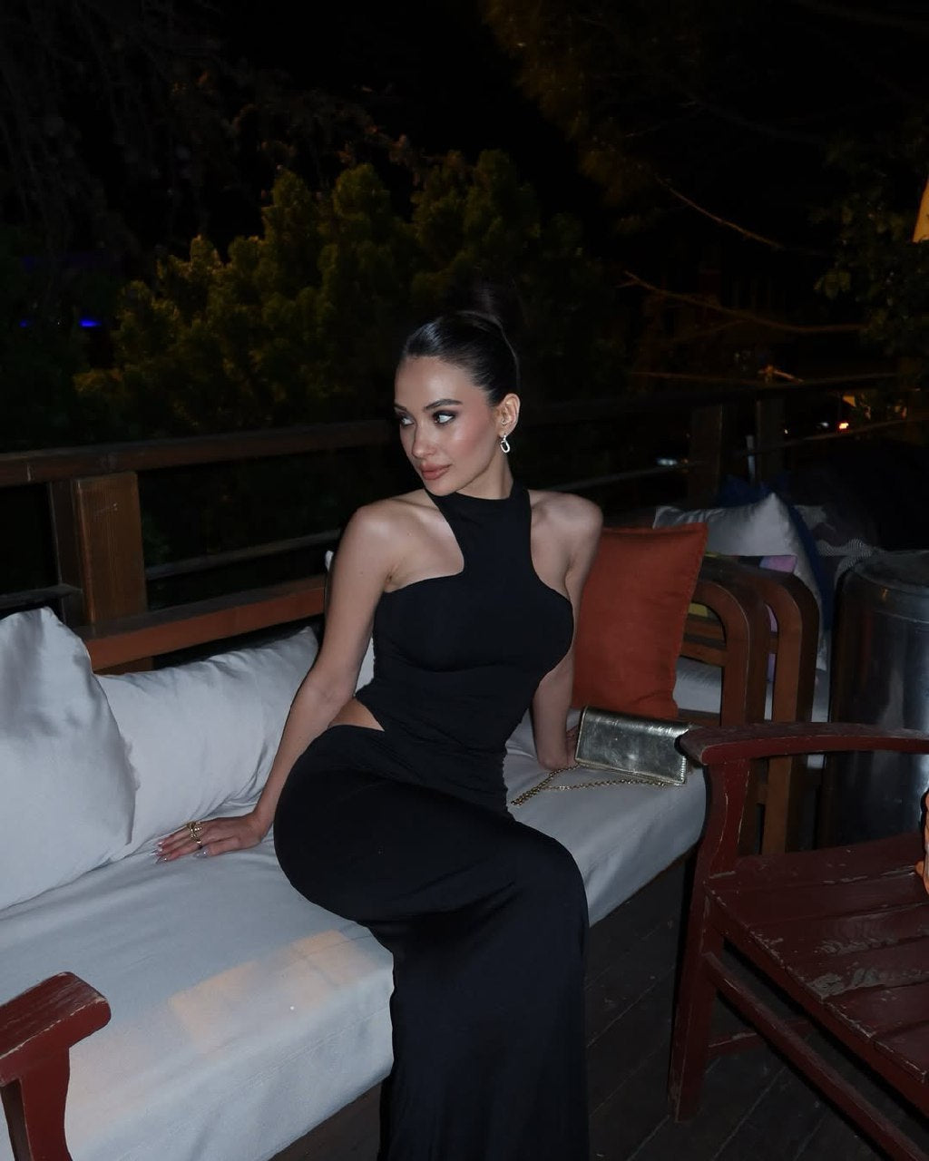The drama is delivered through the asymmetrical side cutout, where the fabric beautifully drapes across the midriff to reveal a flash of skin. This striking detail makes the Solstice Gown the perfect showpiece for summer nights, cocktail parties, and sophisticated resort wear. Minimal effort, maximum impact.