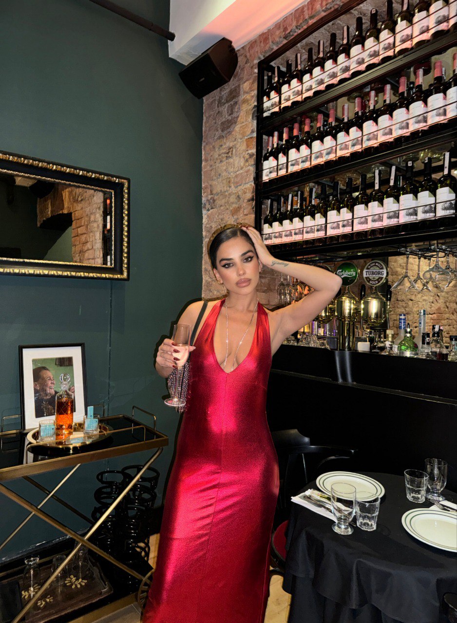 This burnt orange long dress is the definition of statement glamour. Featuring...